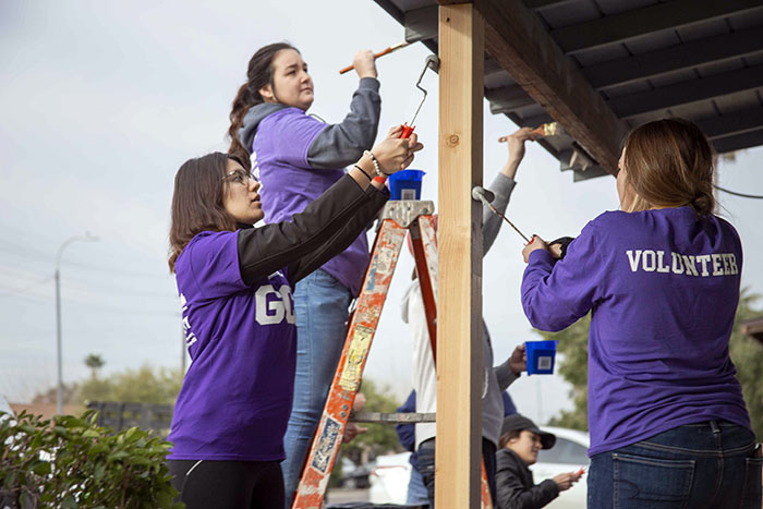 Nursing senior Vianna Demetrulias was a first-time Serve the City volunteer. With a paint roller in hand, she joined her mom, Jennifer McCormick of Cave Creek, in helping Perez beautify his home.