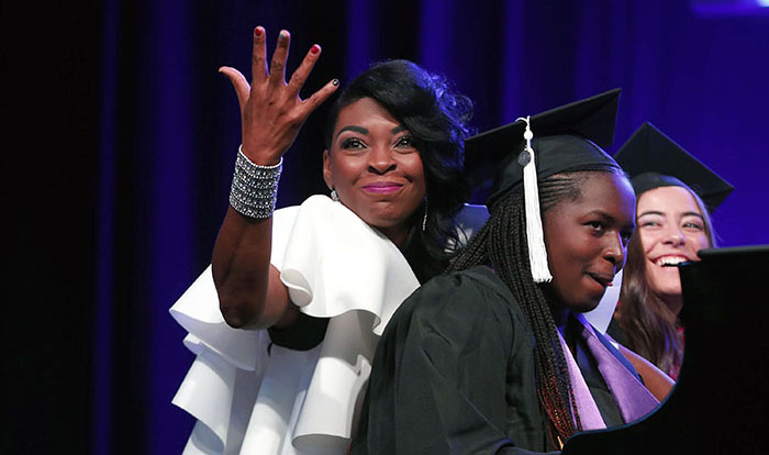 But Friday, in her seventh and eighth commencement ceremonies at GCU, she added a new twist: She chose two graduates at random in each ceremony to come up and play with her even though they had little or no piano experience.