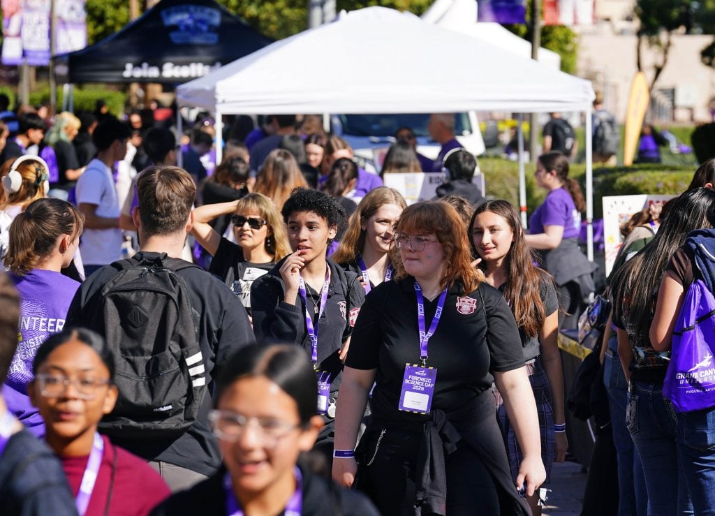 About 2,600 high school and community college students were expected to visit the Grand Canyon University campus on Thursday for Forensic Science Day. They toured the DNA and cadaver labs, solved a mock crime scene, delved into a scavenger hunt, listened to talks from forensic science experts and visited with GCU students showcasing various forensic science topics at tablings along the Promenade.