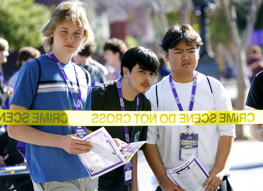 High school students look for clues in the Crime Scene Challenge during the College of Natural Sciences’ annual Forensic Science Day. Feb. 26, 2026. -