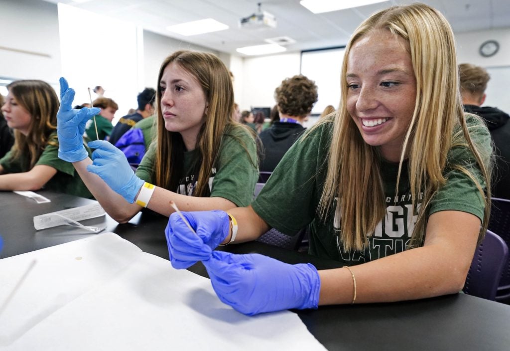 High school students take part in a blood testing exercise during the College of Natural Sciences’ annual Forensic Science Day. Feb. 26, 2026. -