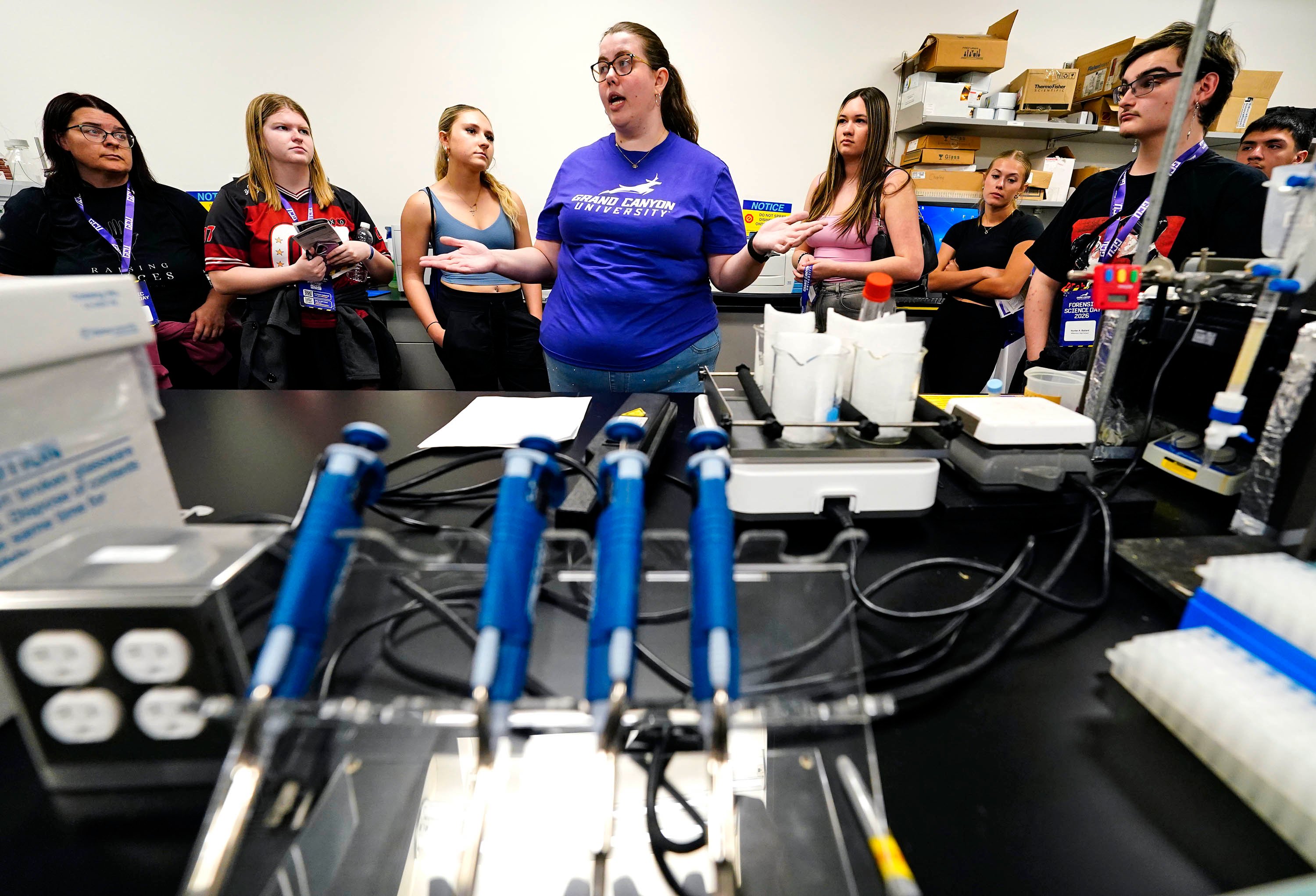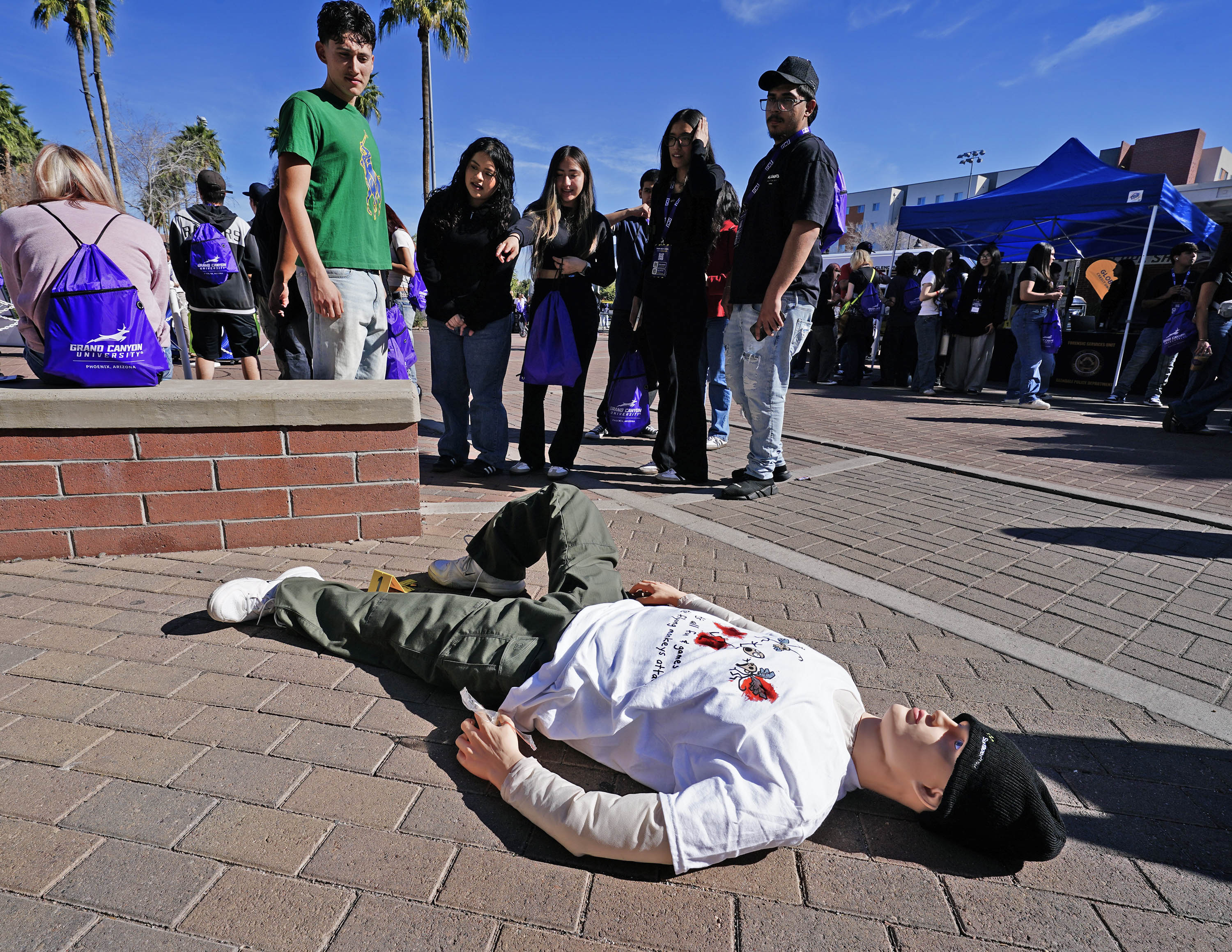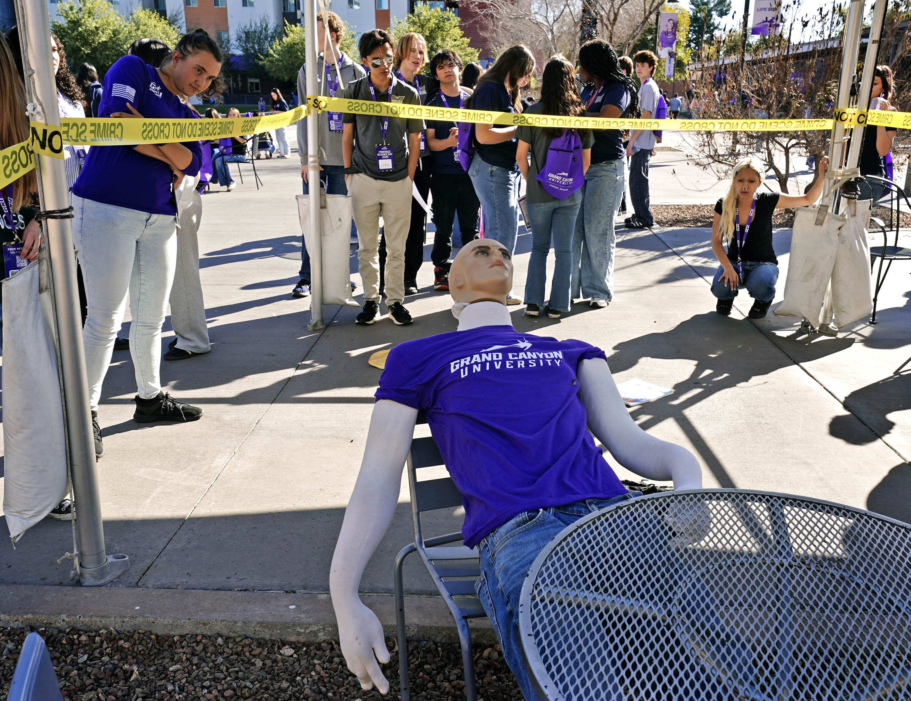 About 2,600 high school and community college students were expected to visit the Grand Canyon University campus on Thursday for Forensic Science Day. They toured the DNA and cadaver labs, solved a mock crime scene, delved into a scavenger hunt, listened to talks from forensic science experts and visited with GCU students showcasing various forensic science topics at tablings along the Promenade.