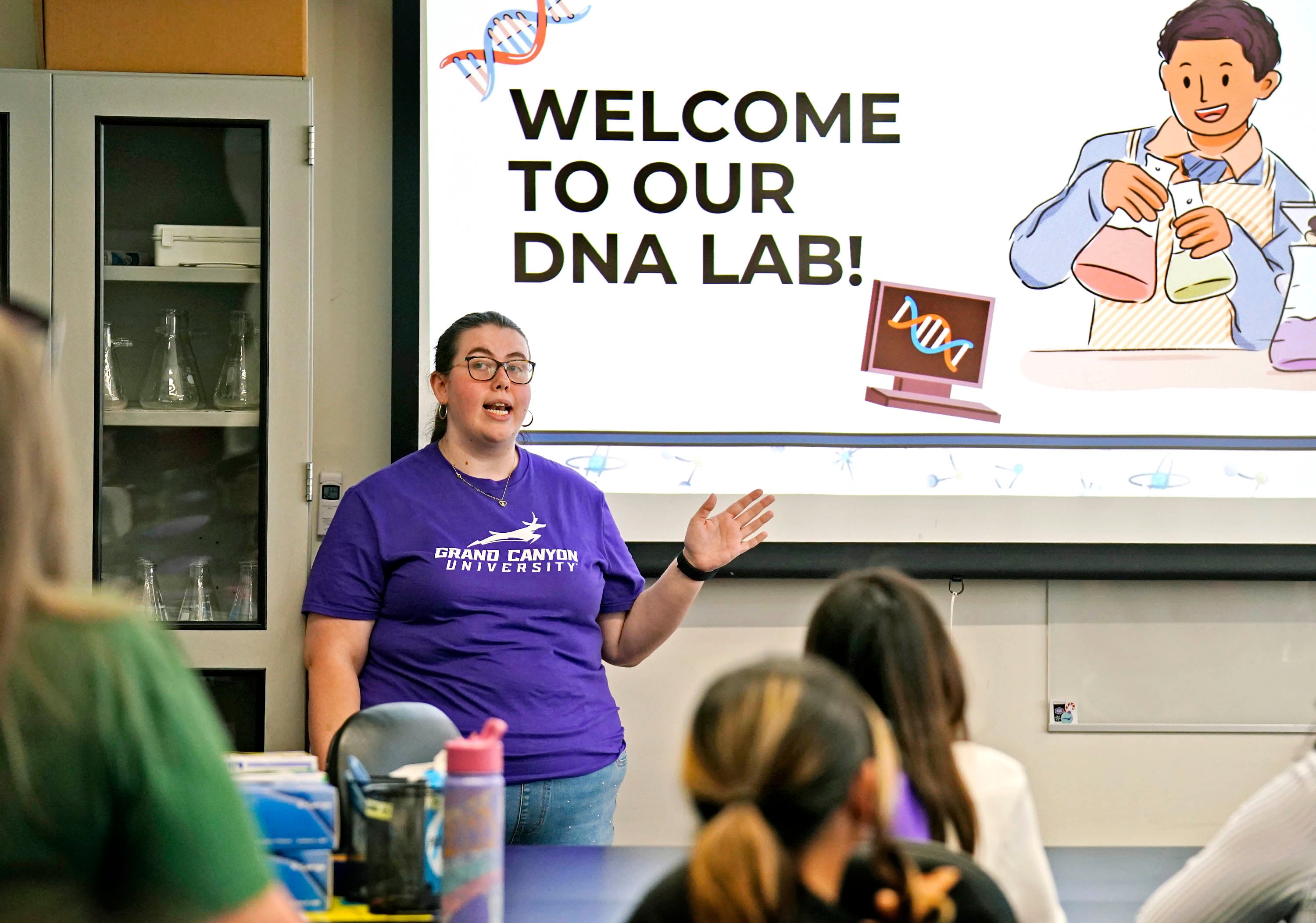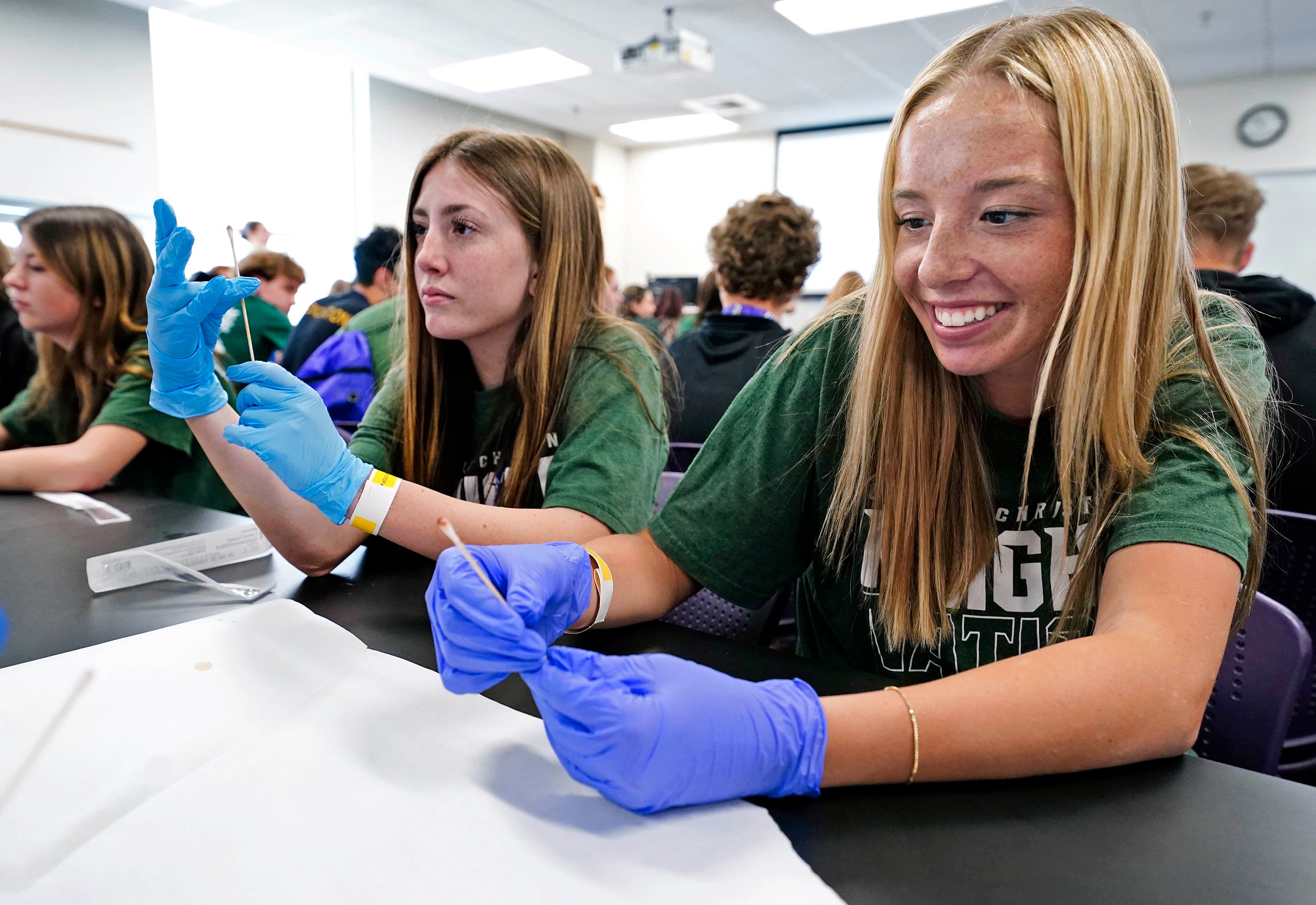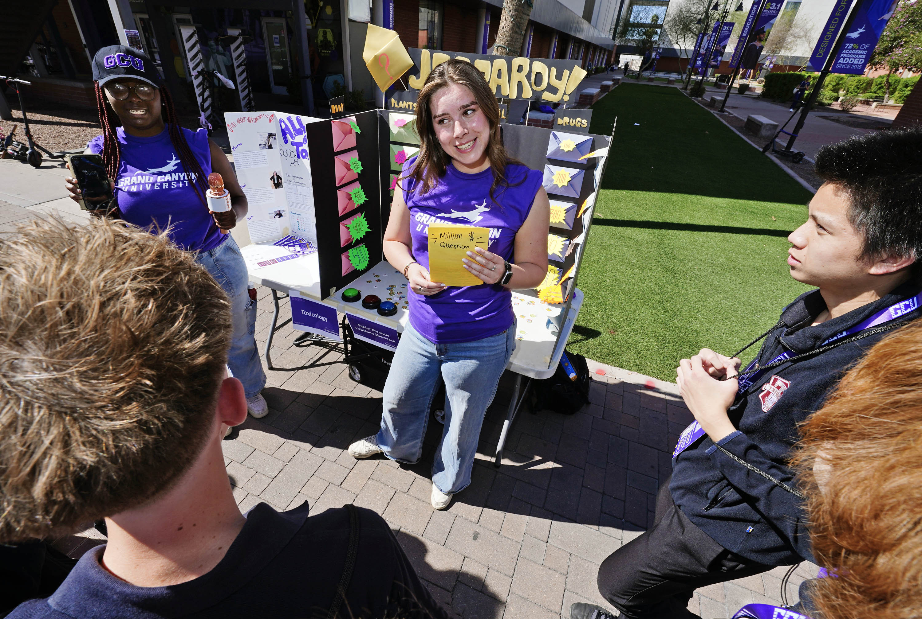 About 2,600 high school and community college students were expected to visit the Grand Canyon University campus on Thursday for Forensic Science Day. They toured the DNA and cadaver labs, solved a mock crime scene, delved into a scavenger hunt, listened to talks from forensic science experts and visited with GCU students showcasing various forensic science topics at tablings along the Promenade.