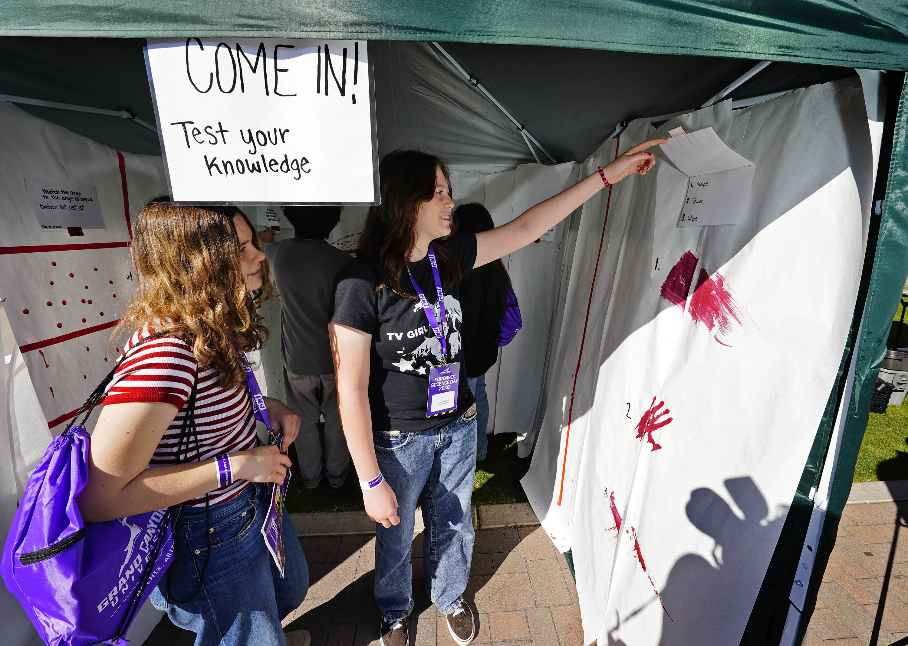 High school students test their knowledge of blood stains in the blood spatter tent during the College of Natural Sciences’ annual Forensic Science Day. Feb. 26, 2026. -