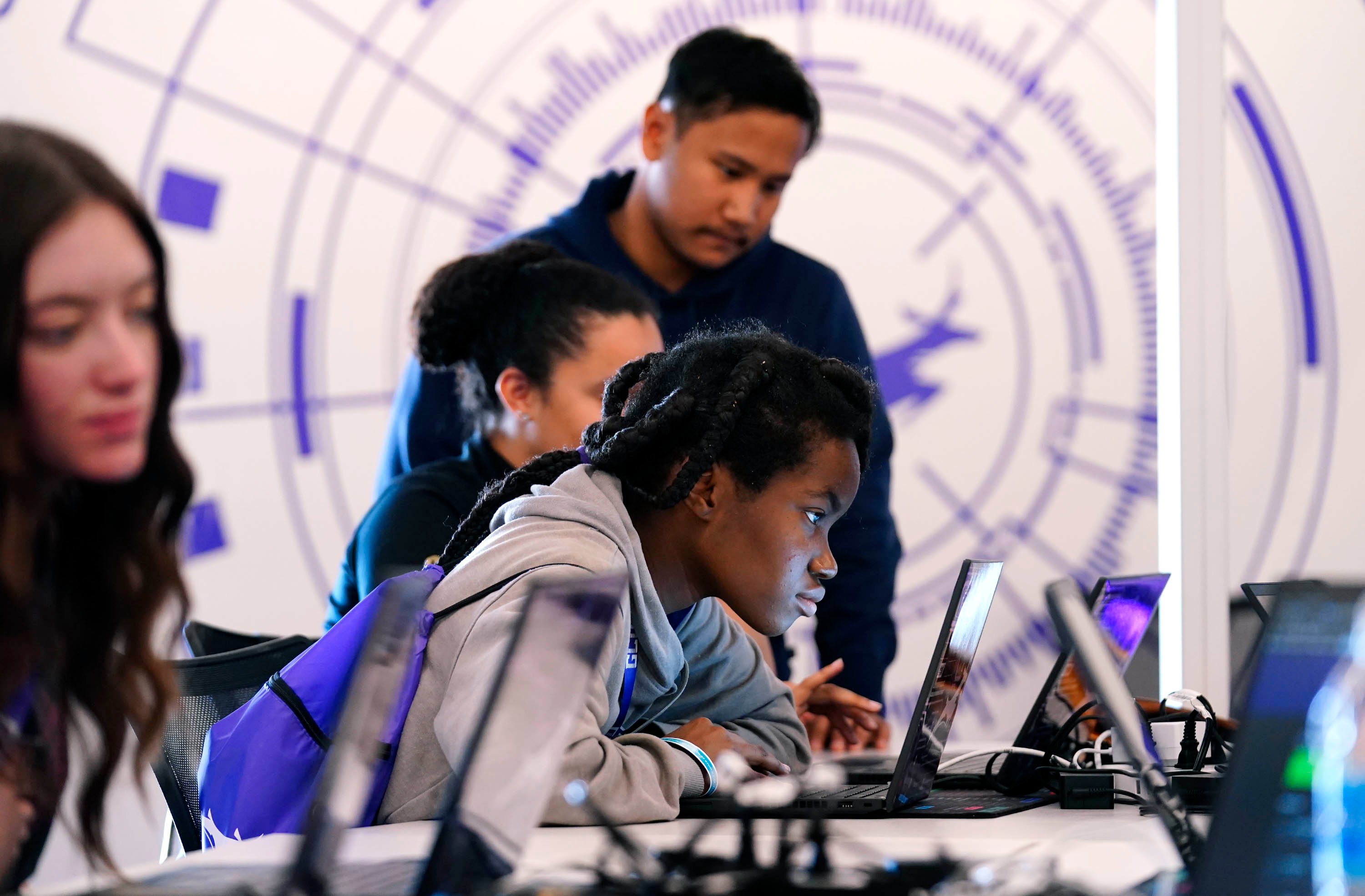 South Point High School student Blossom Ebereonwu looks for digital clues in an exercise at the Cyber Center of Excellence during the College of Natural Sciences’ annual Forensic Science Day. Feb. 26, 2026. -