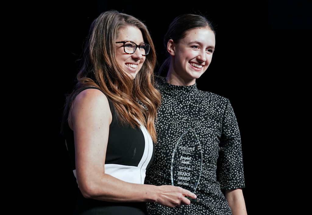 While most of the awards − such as Outstanding Senior of the Year, which went to Gaige Graham − are decided by student vote, the Honors College staff chooses some, too − most notably, the Dean's Award. The winner this year is senior dance and film major Kendall Smith, who saw it as a bittersweet moment because her final undergraduate dance concert is this week and her Commencement ceremony is on Friday.