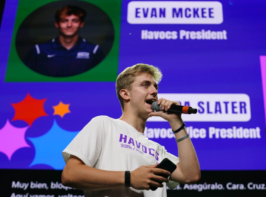 McKee, president of the Havocs, was working that line on Wednesday, telling new students and parents that a Havoc is every student – but if you really want the caps on it, it’s best to show up at sporting events and go bonkers.