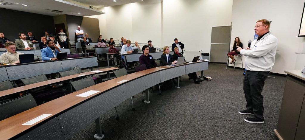 Representatives from each of the four companies were allotted about five minutes to deliver their pitch, followed by a five-minute question-and-answer session and concluding with each due diligence student team disclosing their takeaways and risks of each business.