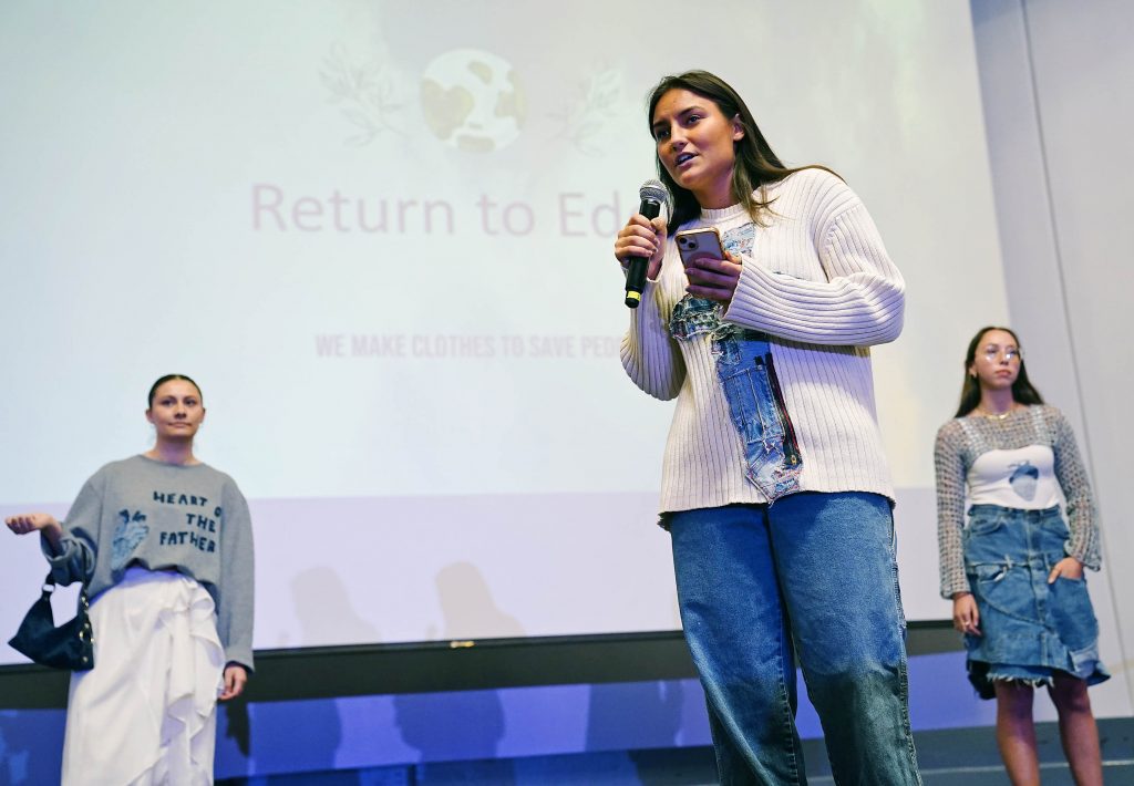Whitman’s models at Canyon Challenge displayed attire while referencing, in her clothing and in the fashion show, the plight of those trafficked, from bondage to freedom.