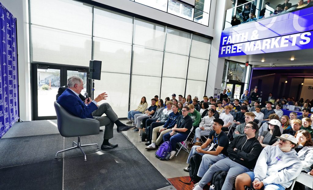 Colangelo shared his life experiences, lessons and faith during an hourlong discussion that included a question-and-answer session with students in the packed lobby of the Colangelo College of Business, his namesake since 2014. The talk was moderated by CCOB Dean John Kaites, who met Colangelo at a Bible study 30 years ago.