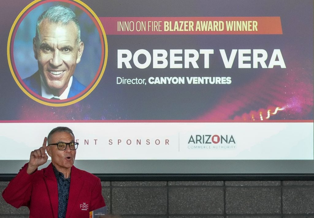 Vera’s impact on students and entrepreneurs was evident Tuesday by the dozens of those who watched him receive the 2025 Blazer Award at the fourth annual AZ Inno Fire Awards at Papago Golf Course in Phoenix.