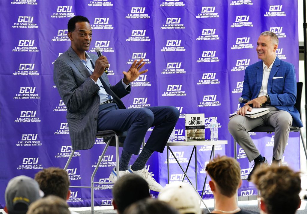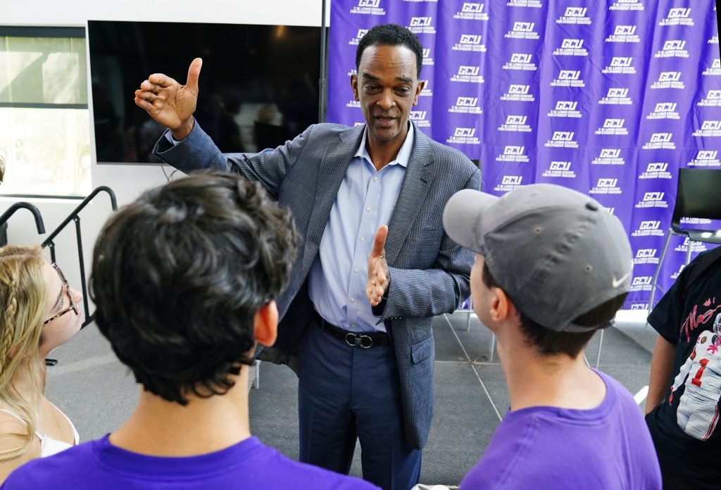 At the end of his talk, Sampson reminded students of the contributions of Jerry Colangelo, the Basketball Hall of Fame chairman for whom GCU’s College of Business is named.