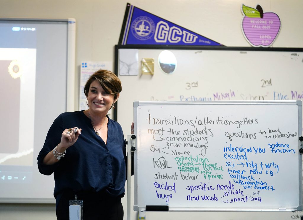 On a recent day, Akard was pacing the GCU-Alhambra classroom, enticing her students to share what they had observed in classrooms that morning. They mentioned how the teachers were constantly asking questions, giving rewards, playing a song during a classroom transition, and letting go of distractions.