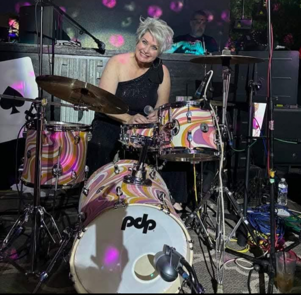 My whole life I have been doing music, but my father was a musician, and my mother didn’t like my father so didn’t want me to do it. I had to play saxophone through high school and played drums for the church, but the church said it was vulgar for women to sit like that.