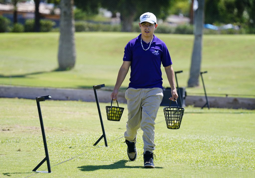 He leads the way down an elevator to the cart garage and a nearby room filled with rental clubs. With a wet rag, he wipes off the heads of each golf club while talking about his days at GCU’s LOPES Academy at the Cardon Center, a two-year nondegree program for neurodivergent individuals to experience college life, take courses, socialize and learn about employment opportunities.