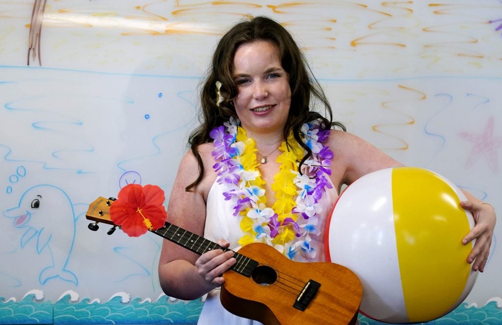 Like any successful party planner, Maggie sat back and watched as everyone had fun playing games she brought, wearing their Hawaiian shirts, straw hats and leis, while listening to the beach music soundtrack she put together.