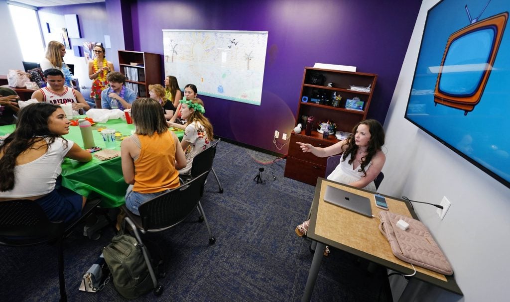 Mom and grandma followed her recently into Grand Canyon University’s College of Humanities and Social Sciences Building, where party planner Maggie had work to do for the semester-ending party at the LOPES Academy at the Cardon Center, a two-year program for neurodivergent adults.