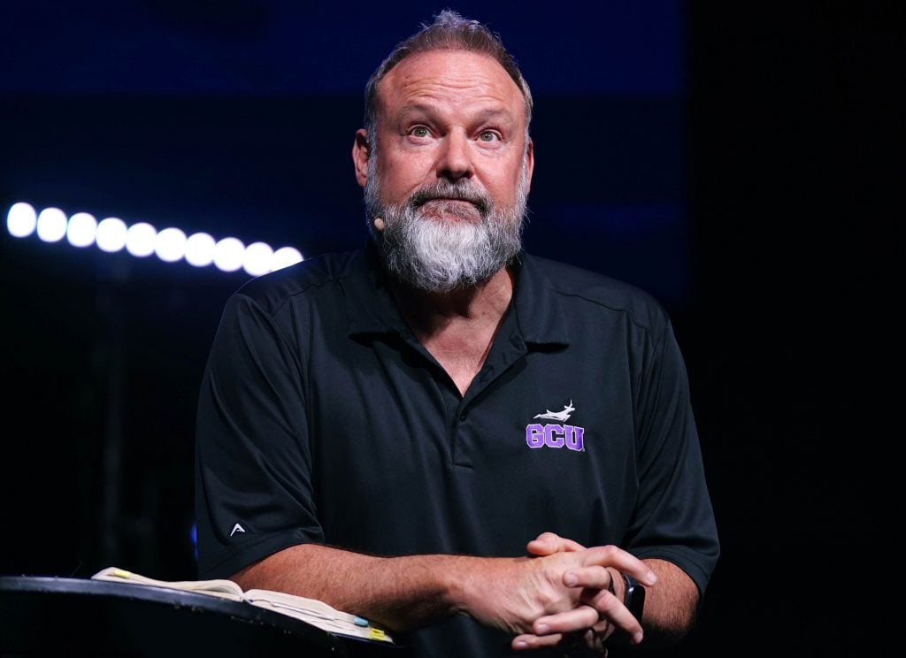 “I don’t know what’s three chapters from now in your life, but I promise you, this God is the same today, tomorrow. He hasn’t changed, hasn’t gotten wiser. He’s just looking for GCU students. I’m sure it won’t be all of you, a few of you to stand and simply say, ‘Hi, man. I trust You. I’m going to hold on with both hands, and God, the rest is up to You. I’m Yours.’