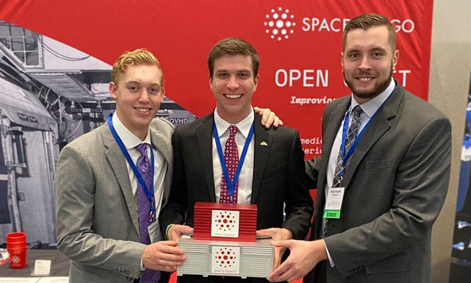 The team placed third with its microbial fuel cell poster presentation in October at the American Astronautical Society’s Wernher von Braun Memorial Symposium at the University of Alabama in Huntsville. Performing exceptionally there, at the ASGSR and then at one more competition means the group likely will be invited to the International Astronautical Congress in Paris in fall 2022.