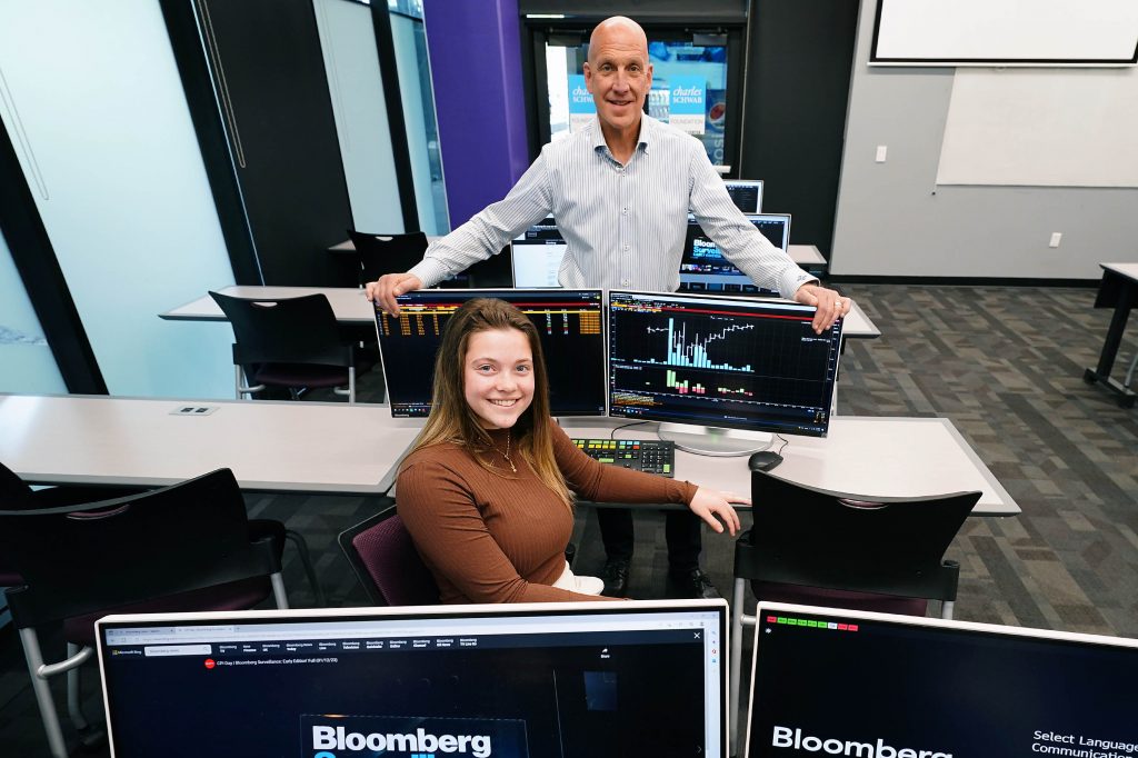 Wieczorek said she had never been on a Bloomberg Terminal before learning of the trading challenge while sitting in Klibanoff’s finance class (FIN-375) last fall.