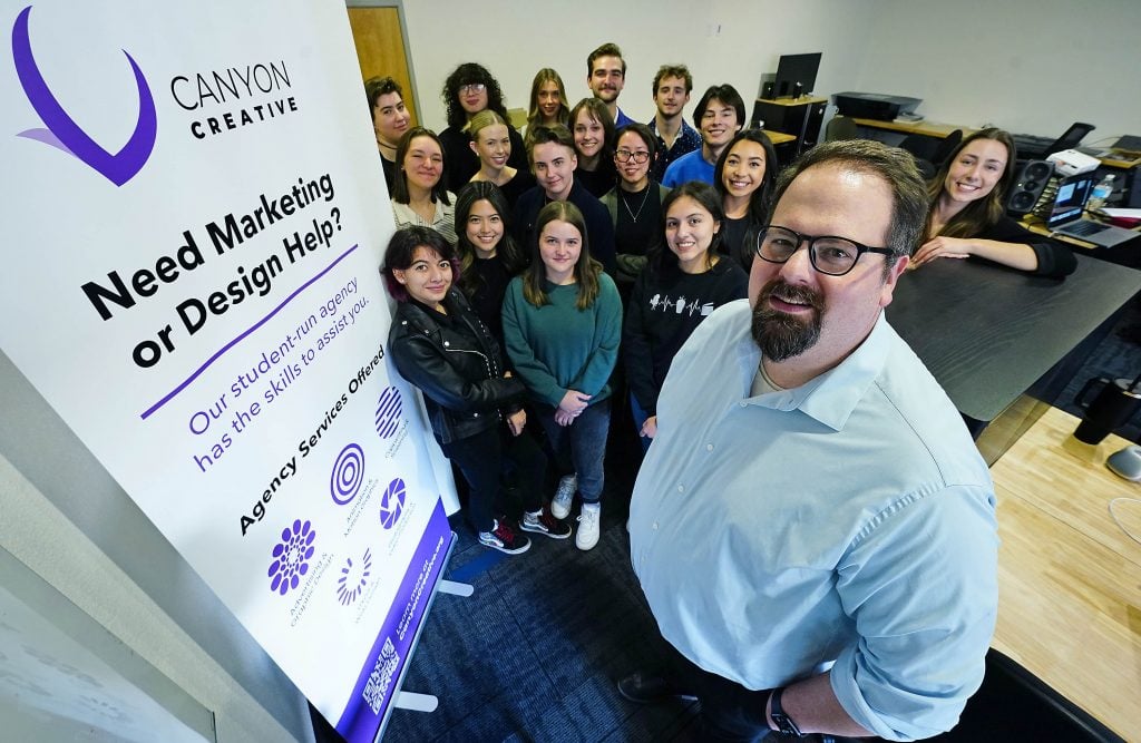 The first Canyon Creative team consisted of eight students meeting in a small open space in the College of Arts and Media. The creative agency quickly gained traction once Murphy introduced it as an internship opportunity. Students can apply to join, and if accepted, they can substitute their final semester with a 12-credit internship. Students also can serve as volunteers or apply to become student workers.