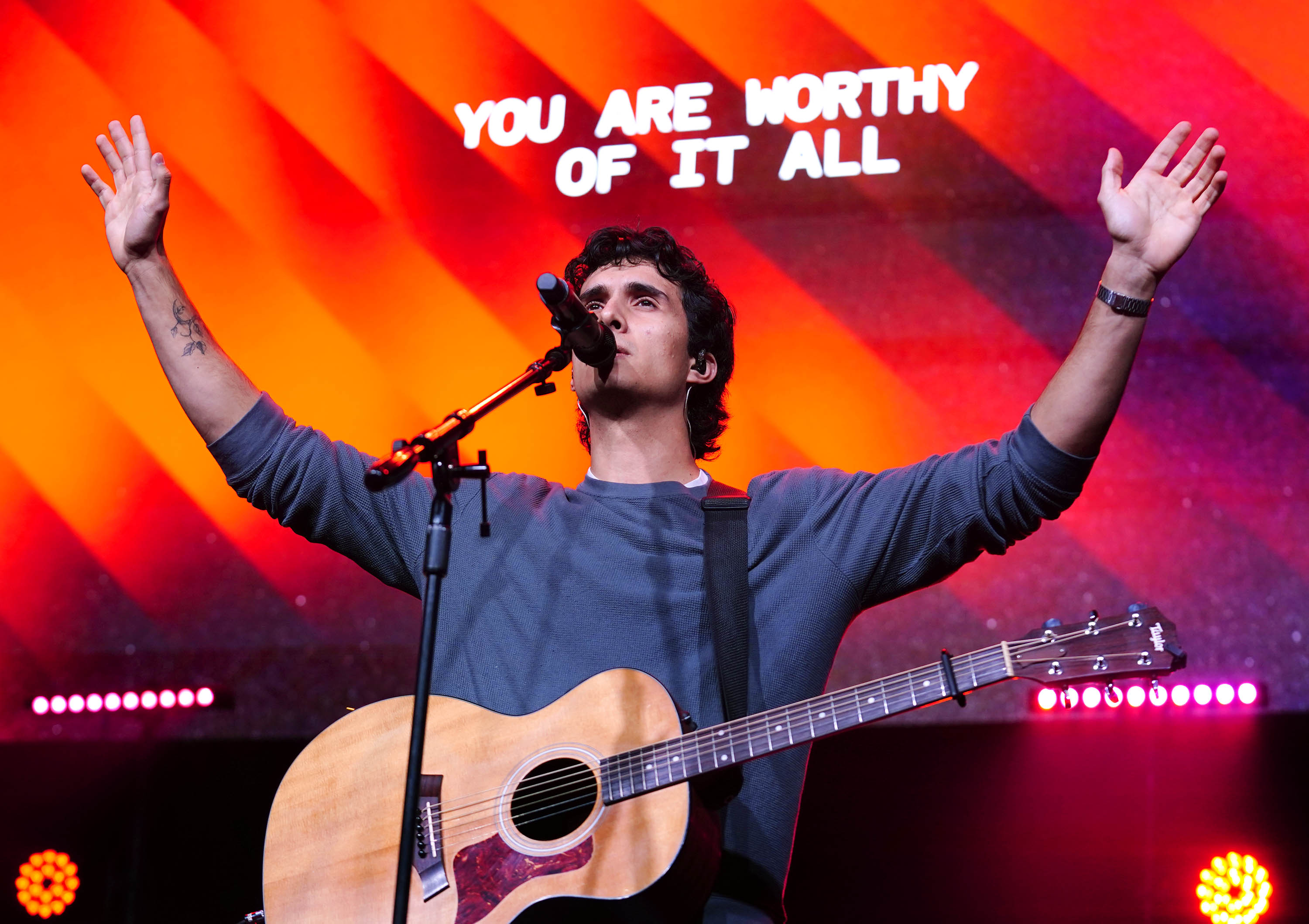 Nathan Padilla and the Worship team perform during Chapel at Global Credit Union Arena on Jan. 26, 2026. -