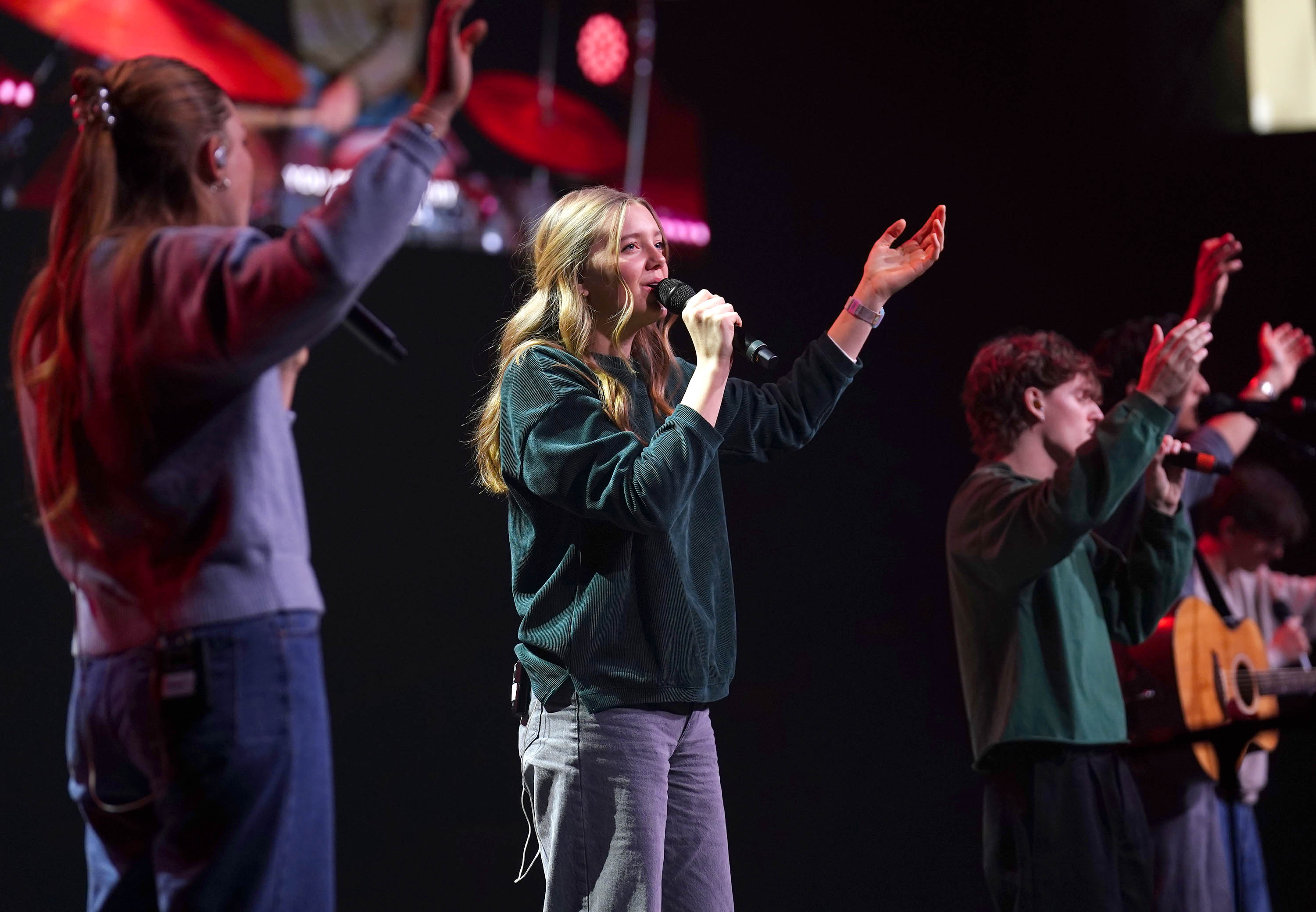 Emma Walker and the Worship team take the stage. -