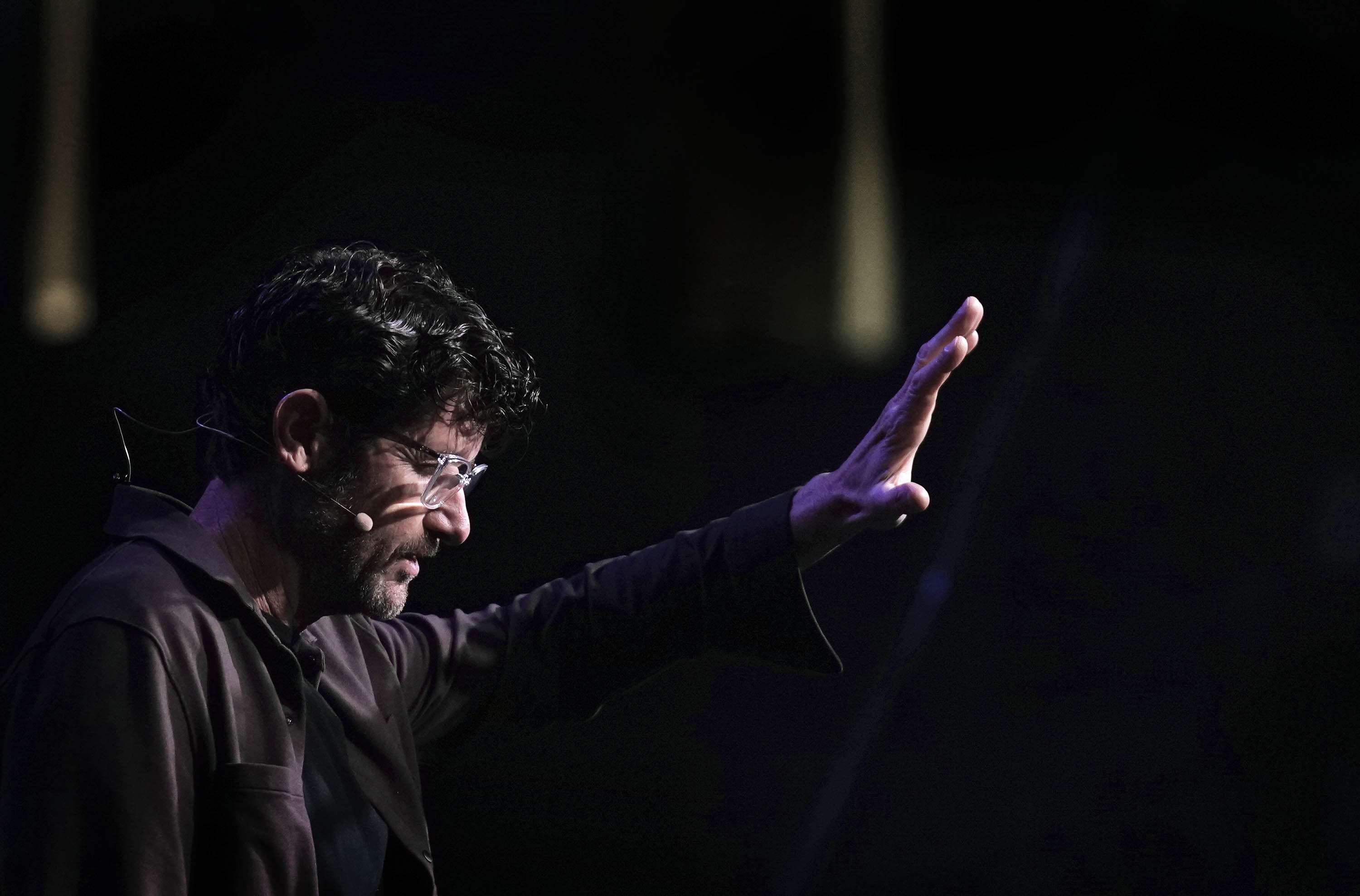 Illuminate Community Church pastor Jason Fritz speaks during Chapel on Monday at Global Credit Union Arena.