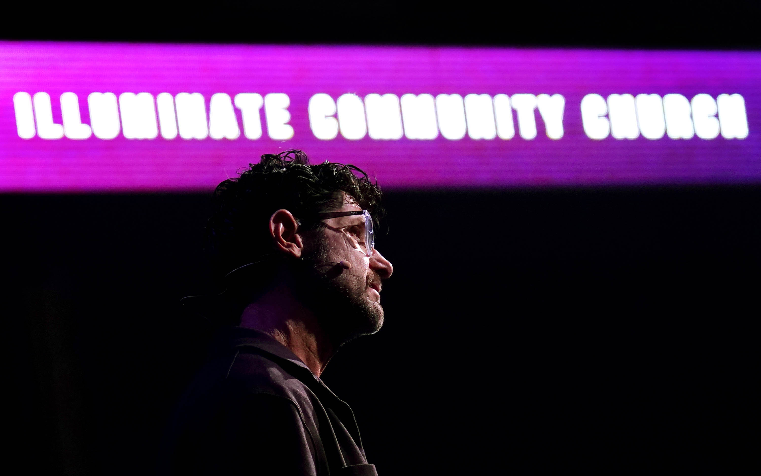 Illuminate Community Church pastor Jason Fritz speaks during Chapel at Global Credit Union Arena. -