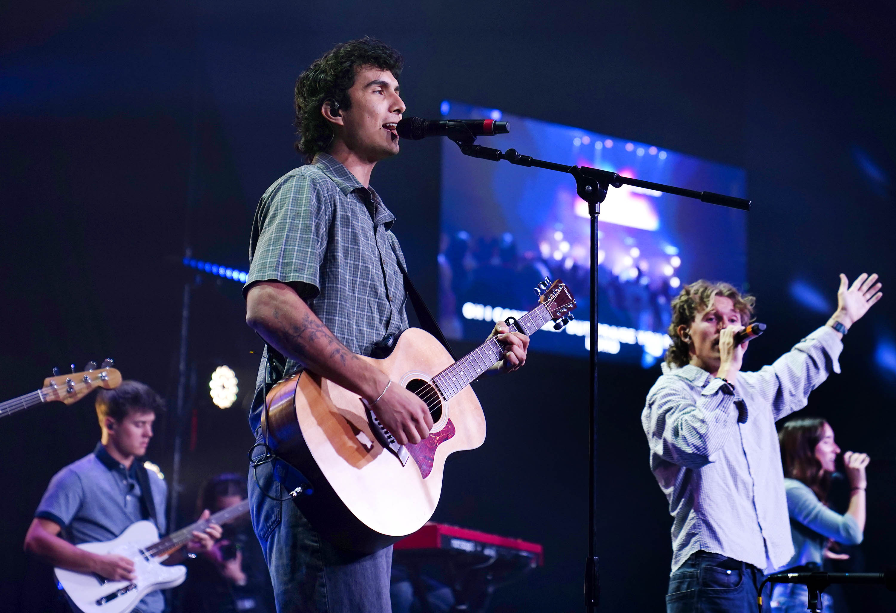 Nathan Padilla and the Worship Team perform during Monday Chapel at Global Credit Union Arena, -