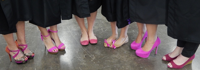 The Gilbert resident has some rough months ahead. So, rather than job hunting, she is planning to volunteer where she receives treatment at the MD Anderson Cancer Center. As Escobar was sharing her story, several classmates approached her, one sporting a pink “L” button, another handing her pink ribbon stickers and several wearing shoes (in pink, of course). “The Lord has really made it possible for me to get here, but it has taken a village,” she said.