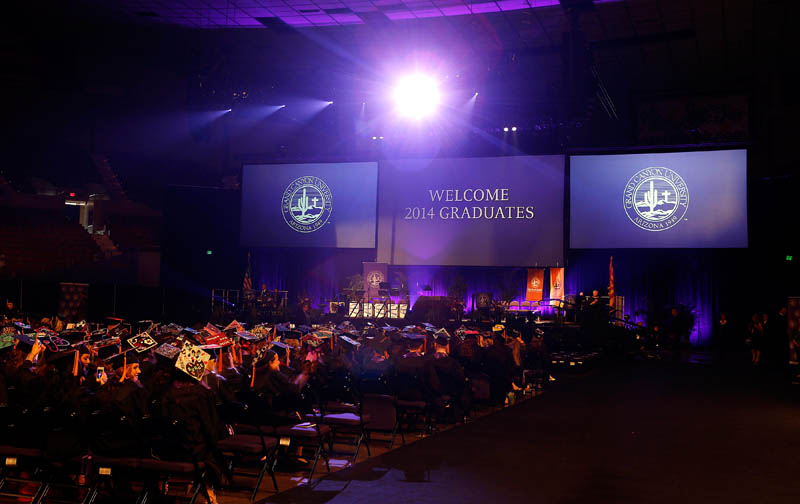 In its glory days, the saddle-shaped arena near downtown Phoenix attracted cheering fans of Elvis Presley, Bob Dylan, Nirvana, the Phoenix Suns – even women’s roller derby. But on Thursday, the applause and shouts at Veterans Memorial Coliseum were all for Grand Canyon University’s Class of 2014.
