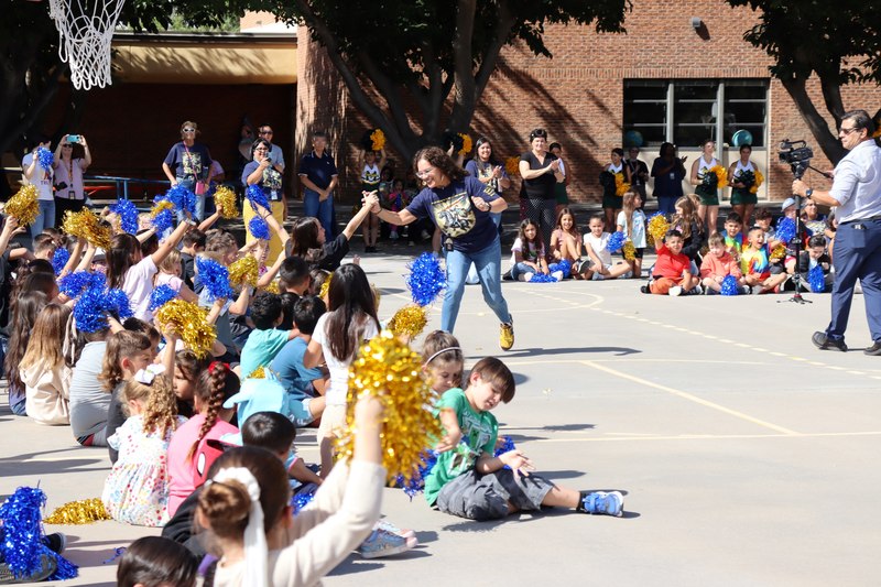She now teaches first grade, and the students she built a relationship with gathered on the school grounds waving pompoms as she was awarded the honor and $10,000 to promote education by New Mexico Public Education Secretary Mariana Padilla.