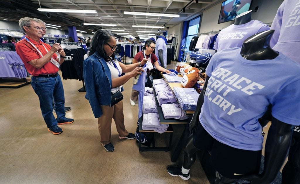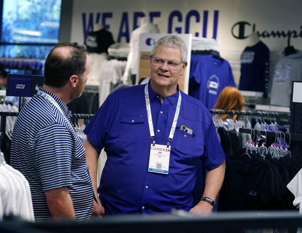 “The store is often the window through which the university is perceived,” association CEO Ed Schlichenmayer said. “And it’s up to the store to make an early or the first impression. And I would give this an A-plus if I’m a prospective student, a parent. I come in and it’s fresh, clean, got great merchandise, a lot of assortment, but it represents Grand Canyon University. And I like the mix of the faith-based and standard sports apparel.”