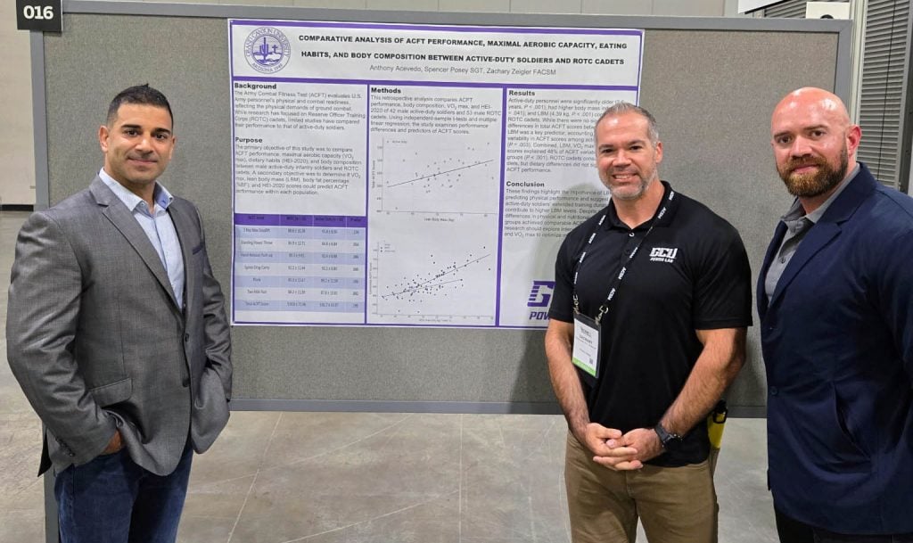 The second study compared the performance of Reserve Officer Training Corps cadets to active-duty soldiers on the Army Combat Fitness Test, which evaluates U.S. Army personnel’s physical and combat readiness. The retrospective analysis compares performance on the fitness test, body composition, maximal aerobic capacity, and the eating habits of 42 male active-duty soldiers and 53 male ROTC cadets.