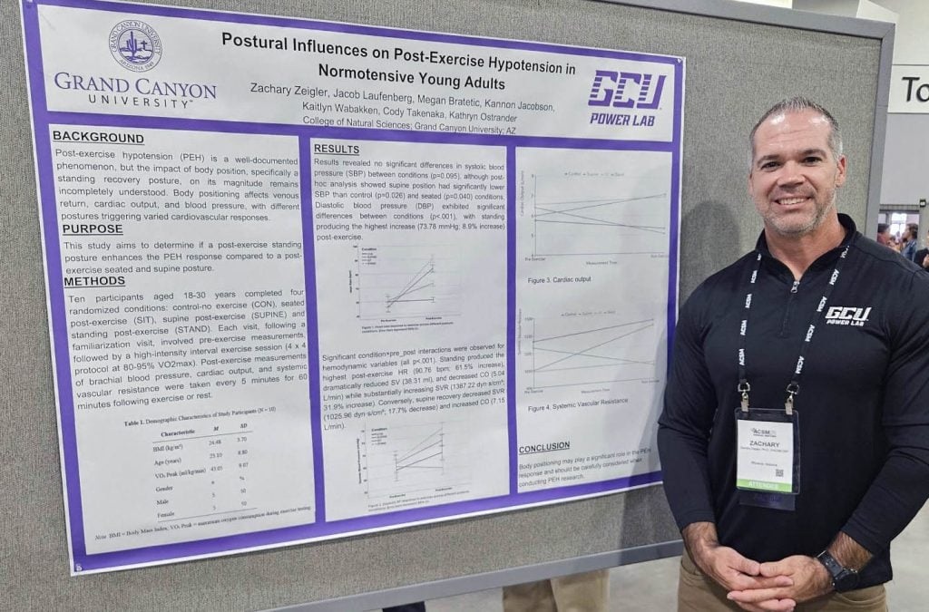 Dr. Zachary Zeigler, exercise science professor in the College of Natural Sciences, presented two studies at the recent annual meeting of the American College of Sports Medicine Meeting in Atlanta.