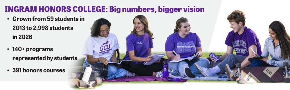 In this new era of the Ingram Honors College, plans are in place to build the Kingdom Impact Council, which will include Christian leaders from across the country who will invest their influence in the college’s students. Just a few of the names on the council include former Phoenix Suns and Arizona Diamondbacks owner Jerry Colangelo, Chicago Bears president and CEO Kevin Warren and professional sports performance coach Darleen Santore.