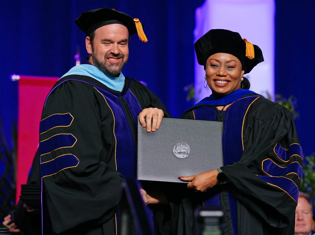 With the assistance of Dr. Michelle Sandoval, her third chair, and reassembling data, Middlebrooks found her path to earning her doctorate in general psychology. Her defense of her dissertation, titled “A Story of Non-Executive Black Women in STEM Overcoming Intersectional Invisibility,” was so impressive that she was nominated and selected to deliver the commencement speech at Wednesday afternoon’s ceremony at Global Credit Union Arena.