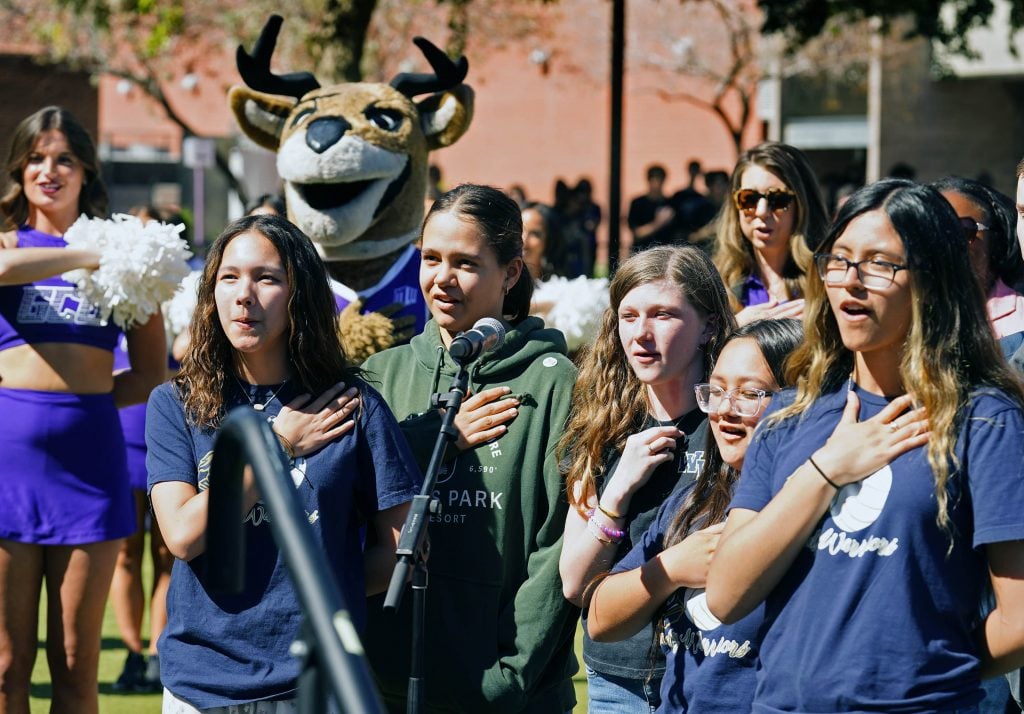 The crowd cheered on the Quad, joined by GCU cheerleaders, Thunder, the pep band and Critical Mass choir, which sang “God Bless America.”