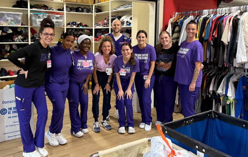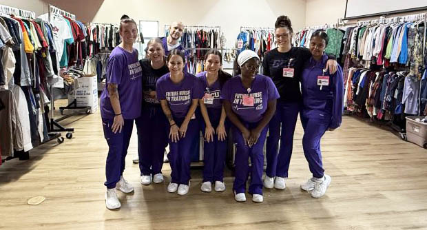 The students, who all were on their public health clinical rotation, cleared the project with Dr. Tristan Palmer, the College of Nursing and Health Care Professions' director of clinical operations. She had them thinking about the program and discussing why providing clean, usable clothing was a key component of quality public health.