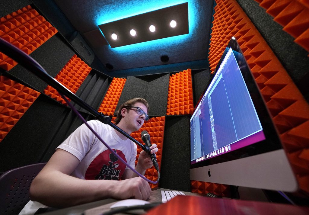 According to Recording Studio/Recording Lab Manager Eric Johnson, “That’s actually one of the bigger reasons why the facility was built. I mean, it’s got a bunch of other reasons why it was built, but podcasts were one of the biggest.”