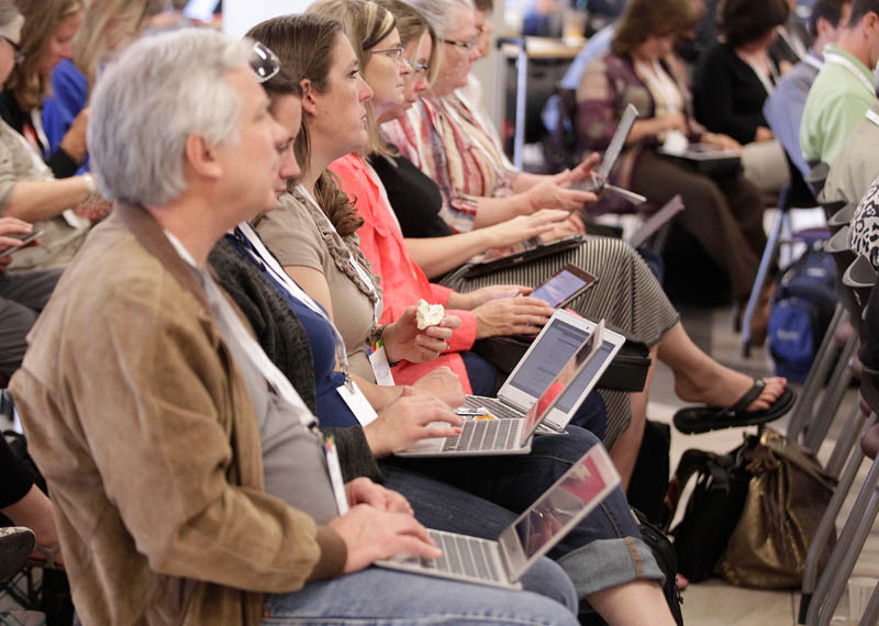 Education consultant Holly Clark, a former teacher, spoke on Wednesday morning about classroom tools such as Animoto (video), Tellagami (narrated animations), Flubaroo (quiz form), Hangouts (social network) and YouTube Book Channel (book review sharing). Clark said the technologies engage students in ways that doing solo book reports and research with paper and pencils no longer are effective.