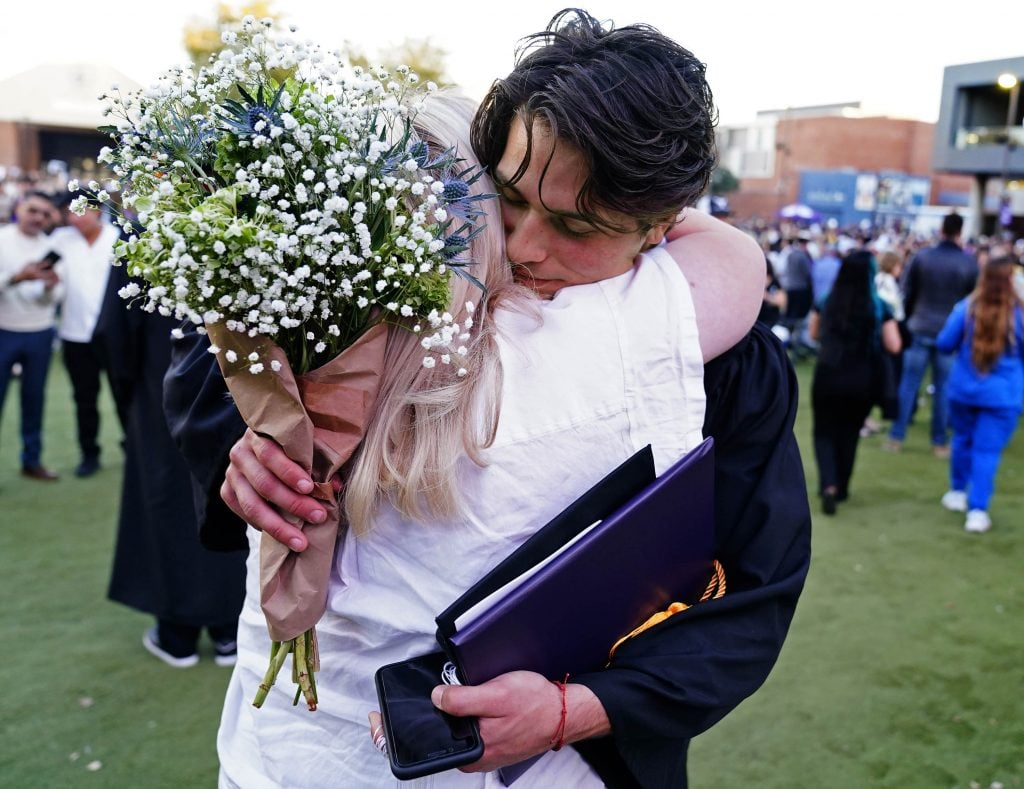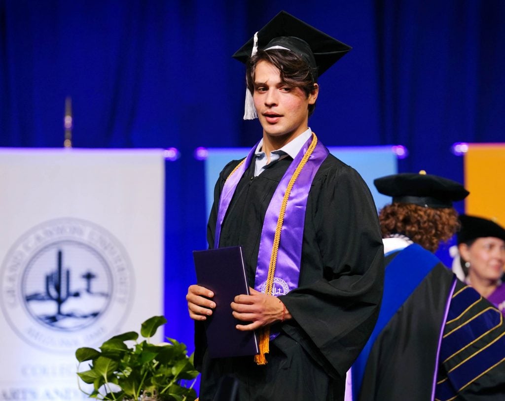 Bianca Burns Guerrero looks over at him, tall and gowned Thursday for college commencement outside Global Credit Union Arena, and chokes up a bit with the memory of his traumatic brain injury during a soccer game just across the Grand Canyon University campus four years ago.