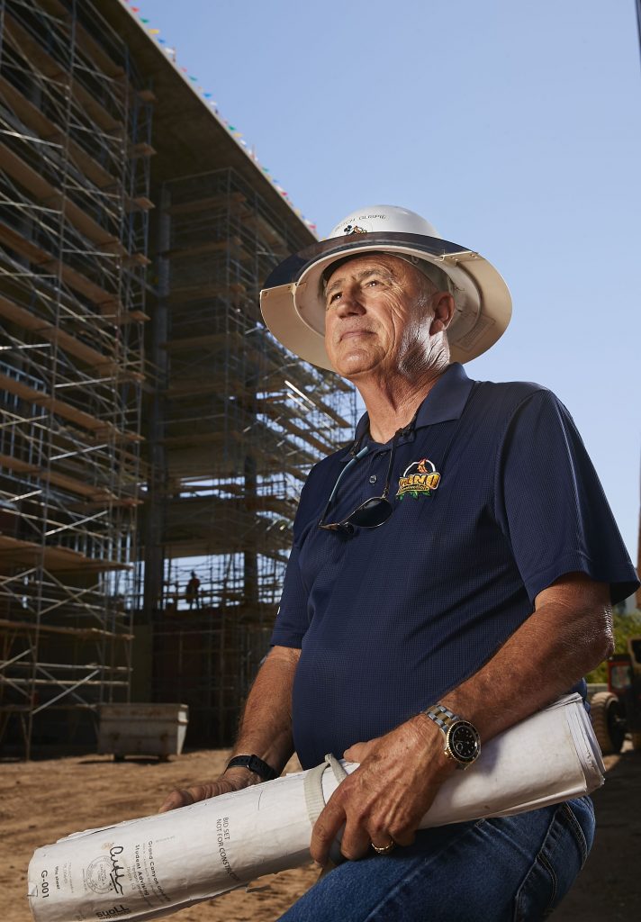 But GCU’s builder really cemented his legacy in 2010 with the construction of Canyon Hall, which would mark the beginning of an unparalleled construction boom that hasn’t stopped. He has been involved in each of the 72 major renovations and new builds since 2010, except for two, GCU Arena and the Student Recreation Center (now called the Lopes Performance Center, though Pono was involved in its 2017 expansion). That includes the construction of all 32 campus apartments and residence halls and eight GCU-affiliated parking garages.
