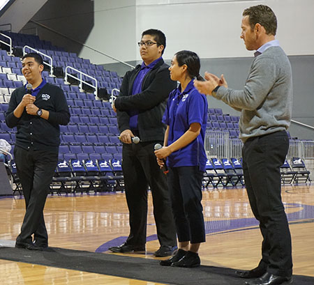 Dr. Joe Veres, director of K-12 outreach programs, and three students spoke during Thursday’s employee meeting.