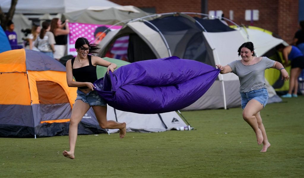 But the group of eight had to settle for the seventh spot in line. Other students already had beat them to the punch with tents, air mattresses and other means of short-term survival at the glamp-a-thon known as Camp Elliott.