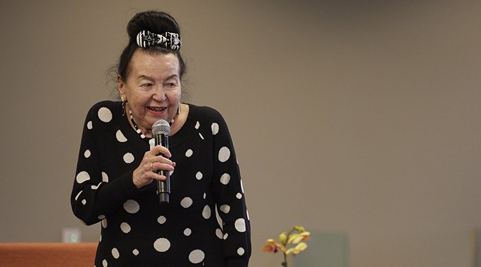 Magda Herzberger shared her story of survival Tuesday to a jam-packed library at Grand Canyon University.