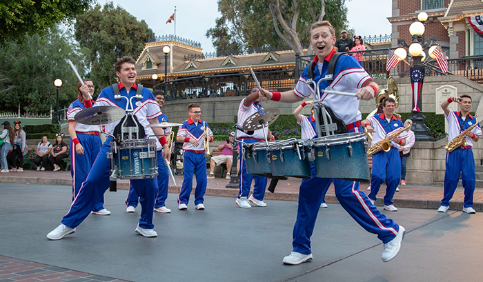 That’s the introduction to the All-American College Band in front of a Disneyland castle on a recent summer day.