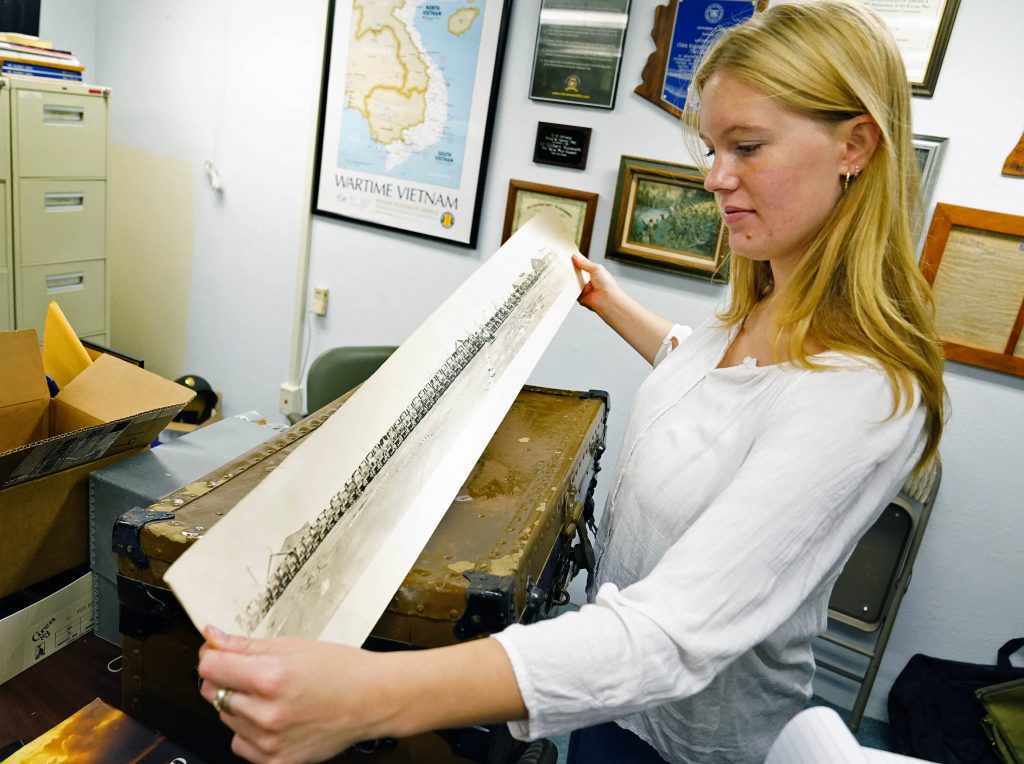 “I want to know all of it. For instance,” she continued, standing before a donated footlocker from 1916 that just arrived, “we have the story of a man. We have the story of his life.”