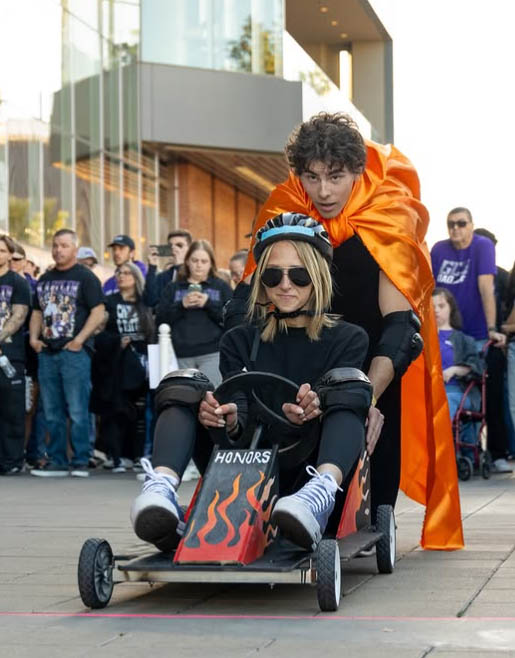 “It’s just a good step away from our everyday activities,” said Tucker Hudson, student body president, of the event, which features racers in homemade derby cars representing such groups as the Canyon Activities Board, Multicultural Office, Honors College and ROTC, to name a few. “It’s a good time and is just something to unite us.”